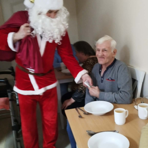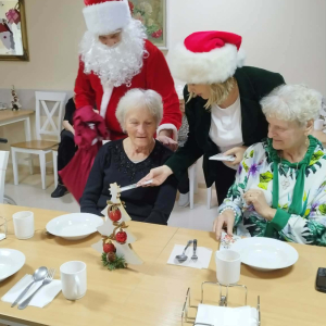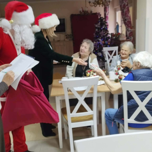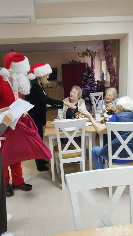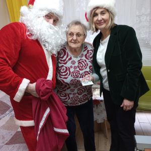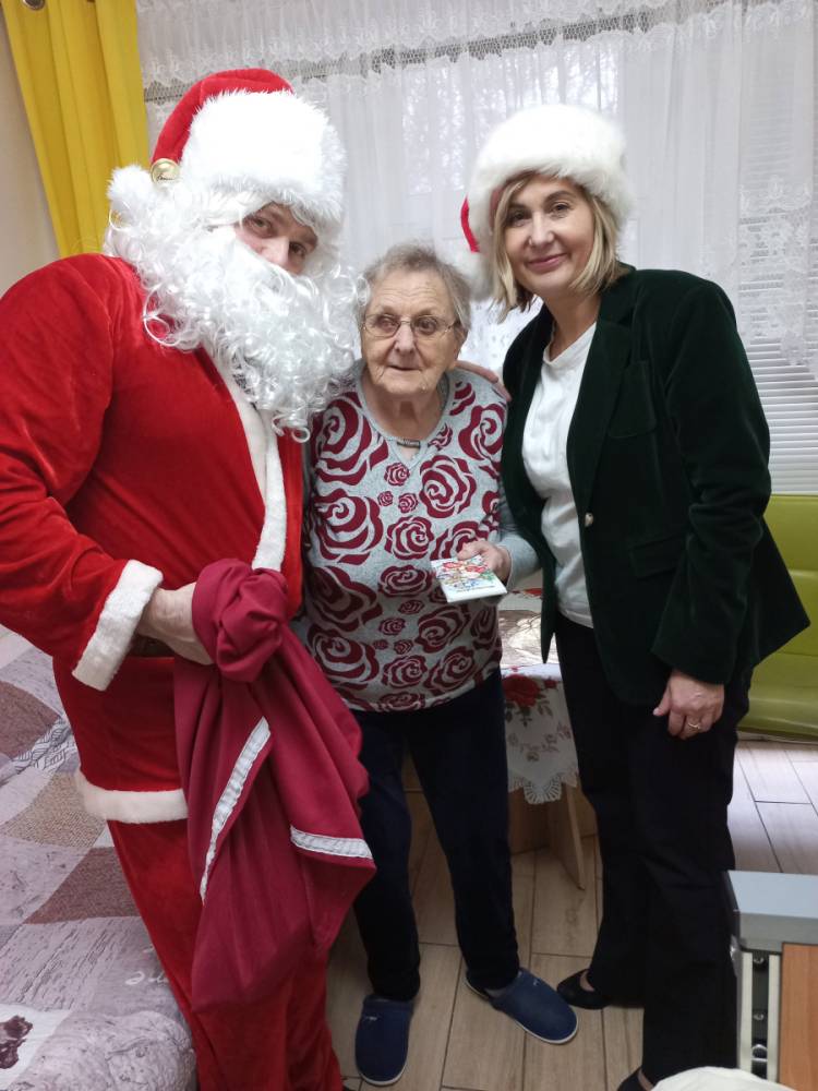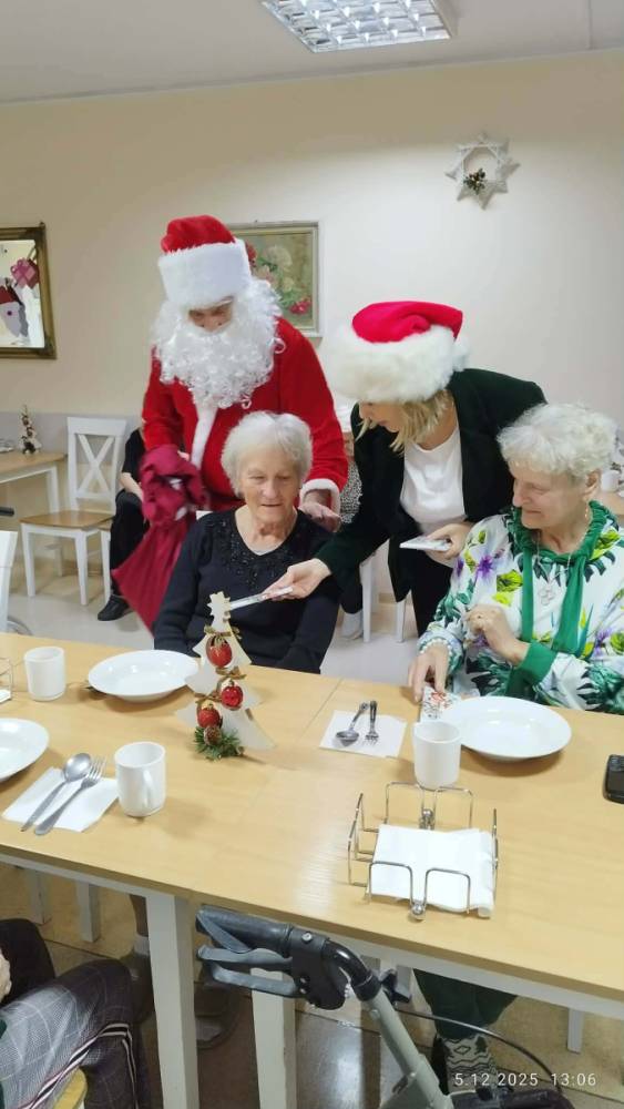 W piątkowe przedpołudnie do seniorów naszego Domu zawitał wyjątkowy gość- Święty Mikołaj w asyście uśmiechniętych mikołajek. Odwiedziny sprawiły wiele radości i wzruszeń. Mikołaj obdarował wszystkich mieszkańców słodkimi upominkami wywołując uśmiechy i ciepłe wspomnienia z dzieciństwa.