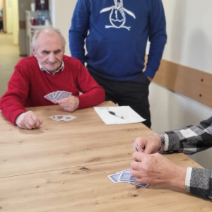 26 lutego grupa naszych mieszkańców udała się na zaproszenie Domu Dziennego Pobytu ,,Życzliwa Przystań”, aby wziąć udział w grze w tysiąca. W trakcie rozgrywek jeden z naszych mieszkańców wykazał się wyjątkowymi umiejętnościami, zajmując pierwsze miejsce. Jego strategiczne zagrania i zdolność do podejmowania szybkich decyzji przyniosły zasłużoną wygraną, co zostało uhonorowane dyplomem i nagrodą. To wydarzenie nie tylko dostarczyło uczestnikom wielu emocji, a także wzmocniło więzi między uczestnikami tworząc przyjazną i wspierającą atmosferę. Były to chwile pełne radości i satysfakcji.