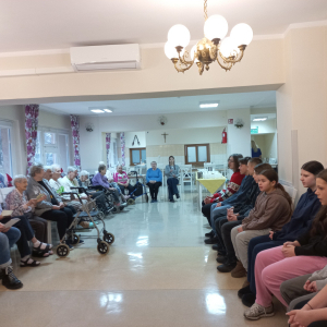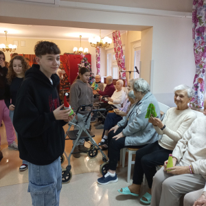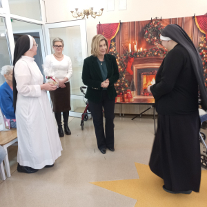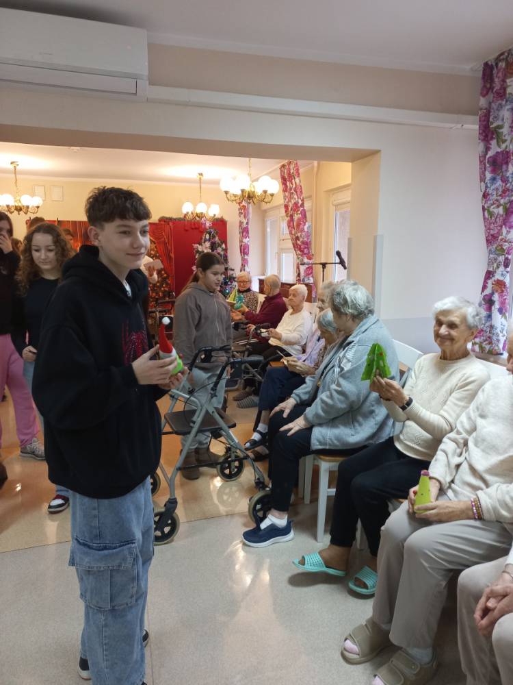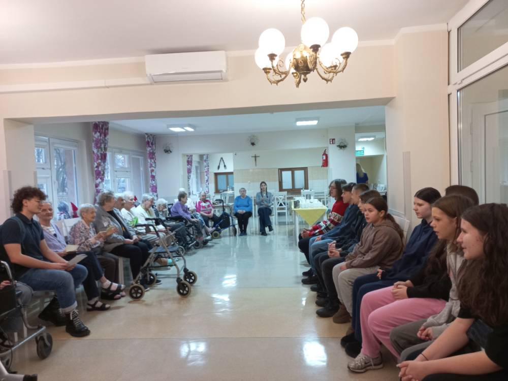 Dnia 22 grudnia odwiedziły naszych Mieszkańców Siostry Dominikanki wraz z młodzieżą. Wspólne kolędowanie napełniło serca wszystkich obecnych ciepłem i miłością. Kolędy przywołały piękne wspomnienia i wzbudziły poczucie jedności. Uśmiechy Seniorów były najlepszym dowodem na to, jak ważne są takie chwile. Wszyscy czuli się jak rodzina.Ta wizyta przyniosła radość Mieszkańcom i młodzieży.