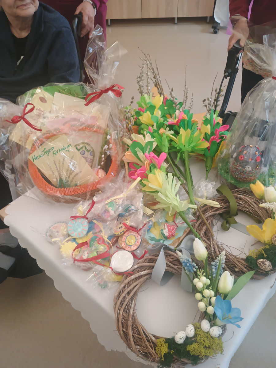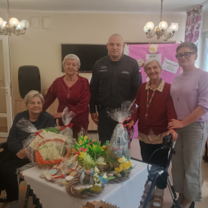 W dniu dzisiejszym w naszym Domu gościliśmy osoby osadzone w Zakładzie Karnym w Inowrocławiu , które w ramach działań o charakterze społecznym zaangażowały się w pomoc na rzecz naszego Domu. Podczas wizyty osadzeni wykonywali prace porządkowe w ogrodzie, grabiąc liście, dbając o otoczenie, co znacząco wpłynęło na estetykę naszej przestrzeni. Najcenniejszym elementem tego spotkania był gest, który poruszył serca naszych mieszkańców- przekazanie własnoręcznie wykonanych palm, kartek oraz dekoracji wielkanocnych.