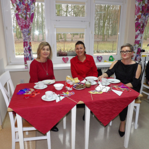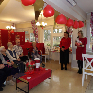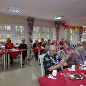 Spotkanie upłynęło w klimacie życzliwości i dobrej zabawy. Nasi mieszkańcy przygotowali piękne wiersze oraz piosenki o miłości, które spotkały się z ciepłym przyjęciem publiczności. W programu nie zabrakło konkursów i quizów podczas, których każdy mógł wykazać się kreatywnością i poczuciem humoru. Dla uczestników przygotowano drobne upominki. Wspólne biesiadowanie i śpiew wprowadziły atmosferę radości oraz sprzyjały integracji obu społeczności.